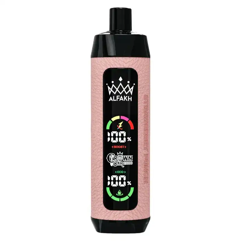 The Al Fakher Crown Bar 20K (20000) Puffs Disposable Vape is designed for vapers seeking maximum power, extended usage, and flavor intensity. With up to 20000 puffs and 30ML of e-liquid, it provides long-lasting performance. The 1 ohmmesh coil enhances both flavor and vapor production, the LCD screen makes it easy to monitor both battery life and remaining e-juice. The leather wrap adds a touch of elegance, ensuring a premium feel and look.