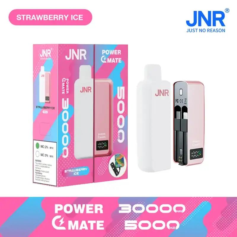 Experience the future of vaping and utility combined with the JNR Power Mate 30K (30000) Puffs Disposable Vape & Power Bank.