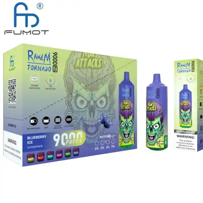 Experience the convenience and versatility of the RandM Tornado 9K (9000) Puffs Disposable Vape by Fumot today.